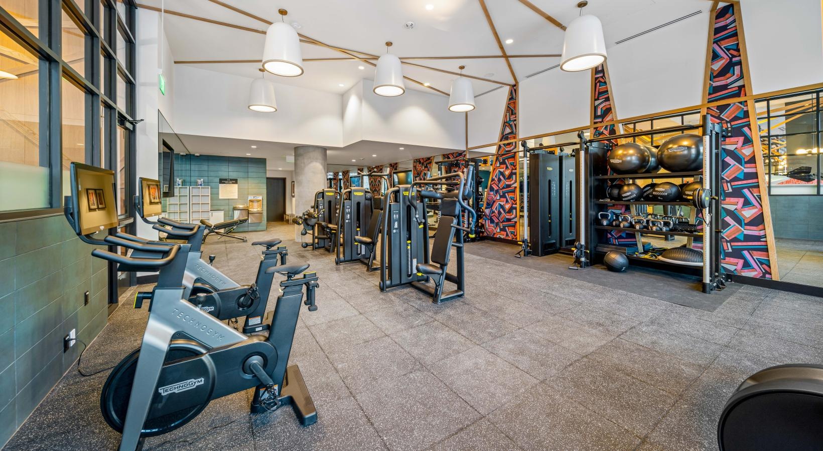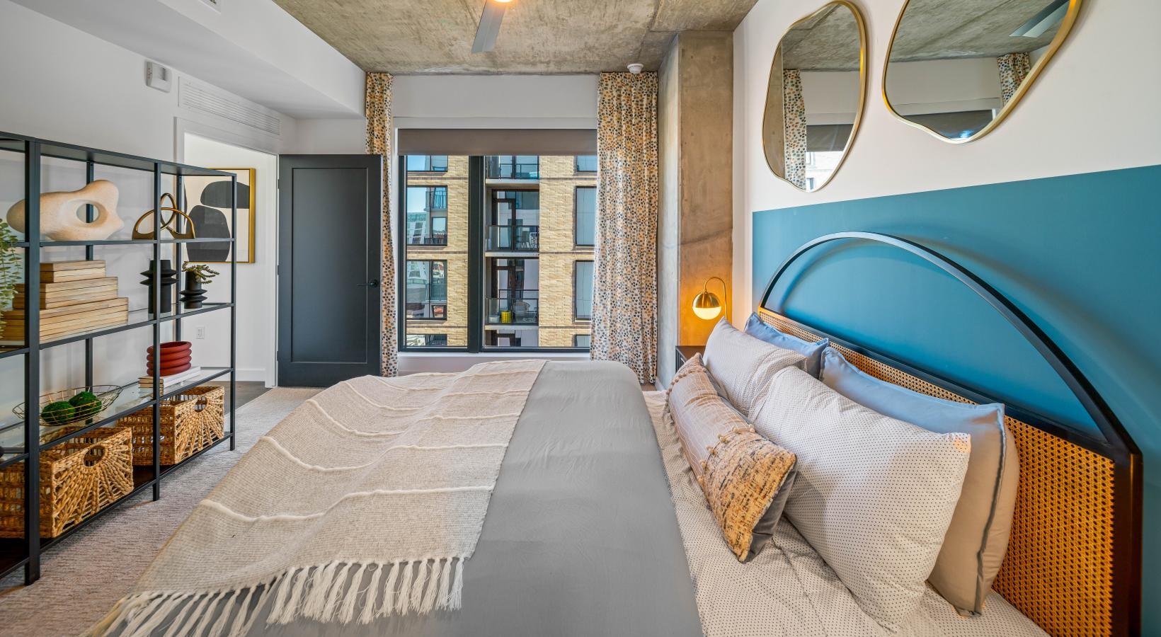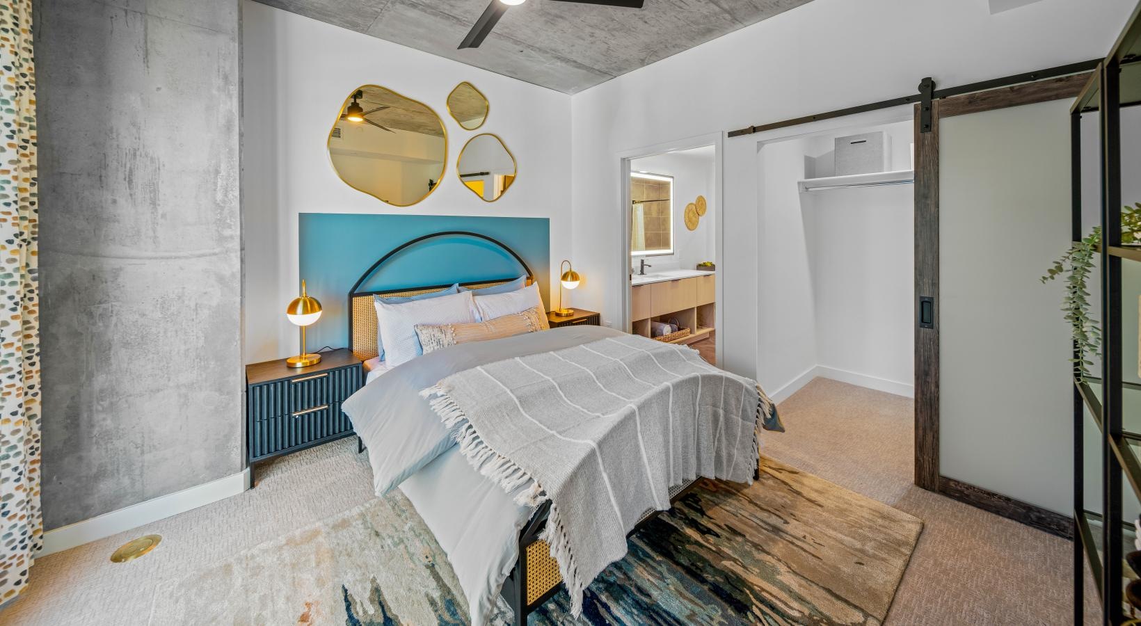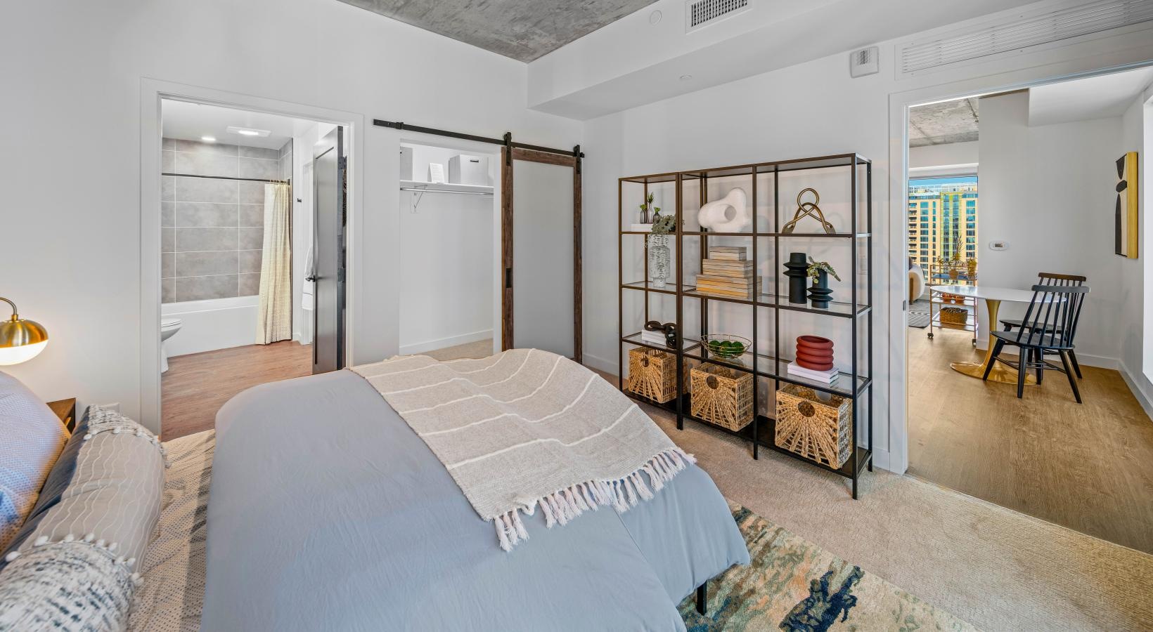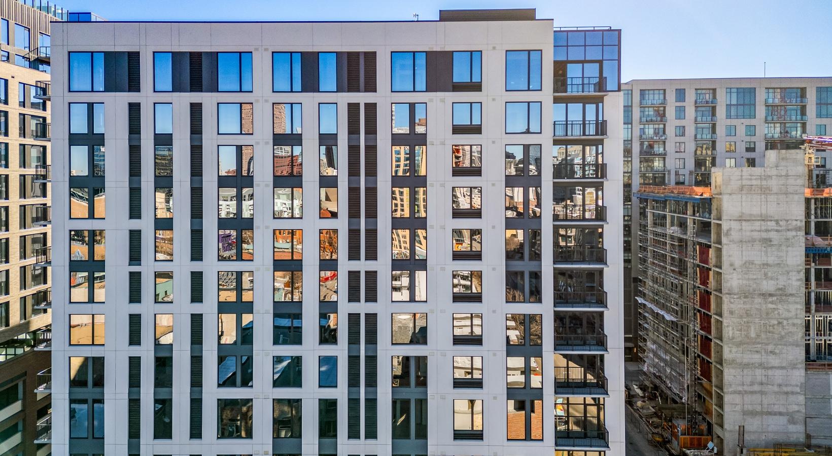 Life at Kindred is candid — neighbors chatting on the rooftop, morning coffee in the kitchen, a sunset glow across downtown.
